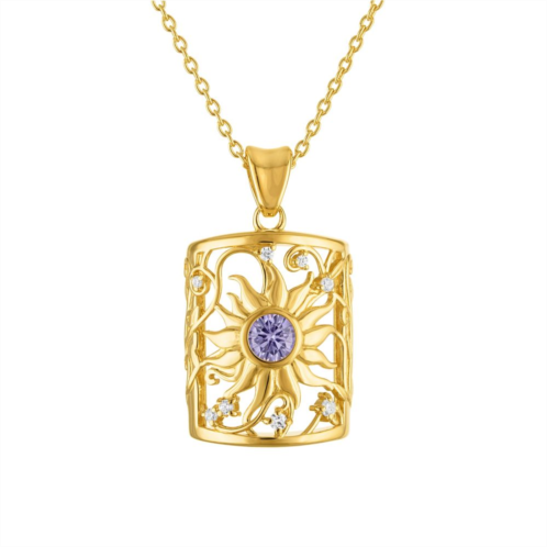 The emblem of Corona sparkles brightly with this Rapunzel sun necklace. Detailed with purple cubic zirconia, this 18k yellow gold-plated jewelry piece by Rebecca Hook features a delicate filigree design as a shining reminder for fans ofTangledto always pursue your dreams.