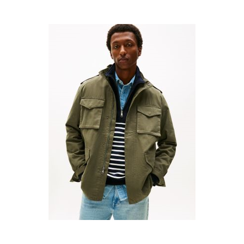 Tommy Hilfiger men's jacket. Inspired by vintage military style, our twill field jacket combines rugged durability with signature Tommy Hilfiger details. With utility pockets and a structured silhouette, it’s the perfect layer for an effortlessly cool, go-anywhere look.