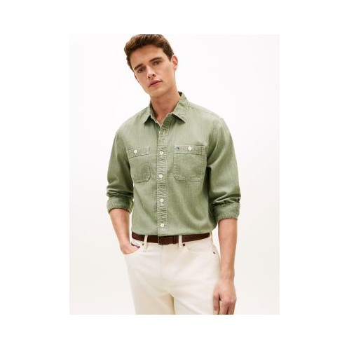Tommy Hilfiger men's shirt. Round out your off-duty wardrobe with our workwear-inspired denim shirt. Designed with two chest pockets and cut in an easy fit, it layers with ease.