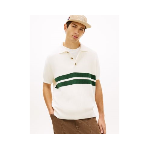 Tommy Hilfiger men's sweater. Our sweater polo is made from premium cotton in a smooth, dense Milano stitch for added structure. Varsity stripes at the chest give this preppy layer a sporty, retro vibe. Part of our Tommy Jeans collection.