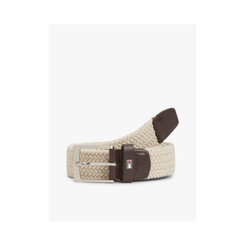 Tommy Hilfiger men's belt. This square-buckle belt is designed with a stretchy elastic weave, ready to complete your casual looks with a tactile touch.