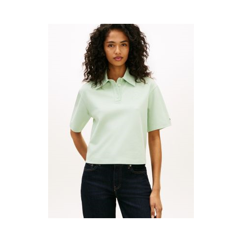 Tommy Hilfiger women's polo. Our script monogram polo is made from heavyweight stretch pique with a subtle textured finish that adds dimension and breathability. Cut in a relaxed fit, it's an easy, comfortable layer.