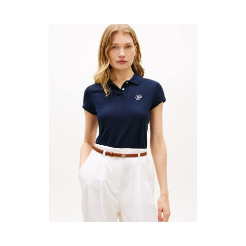 Tommy Hilfiger women's polo. Our script monogram polo is made from premium cotton in a pique weave known for its subtle textured finish that adds dimension and breathability. The medium-weight stretch fabric balances structure and softness, offering a lightweight feel that stays comfortable all day.