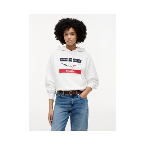 Tommy Hilfiger women's hoodie. Our heavyweight hoodie is made from premium cotton terry and is finished with the chevron logo at the chest. Celebrating optimism and craftsmanship, discover a collection blending classic American cool with modern race-inspired details and the Cadillac F1 Team’s precision.