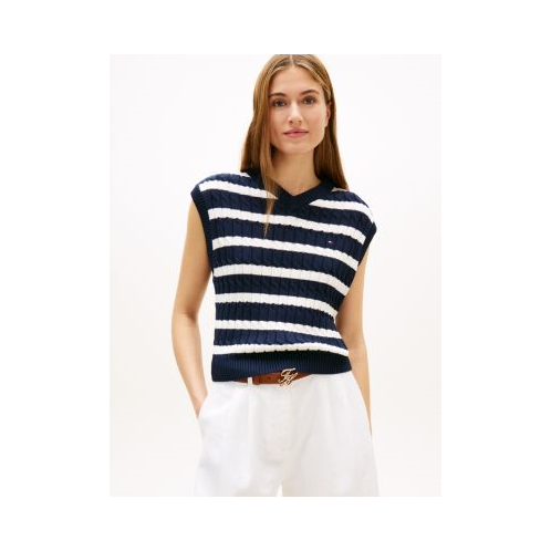 Tommy Hilfiger women's sweater. Made from a fine-gauge cable knit, this lightweight cotton V-neck sweater vest is ideal for transitional-weather days.