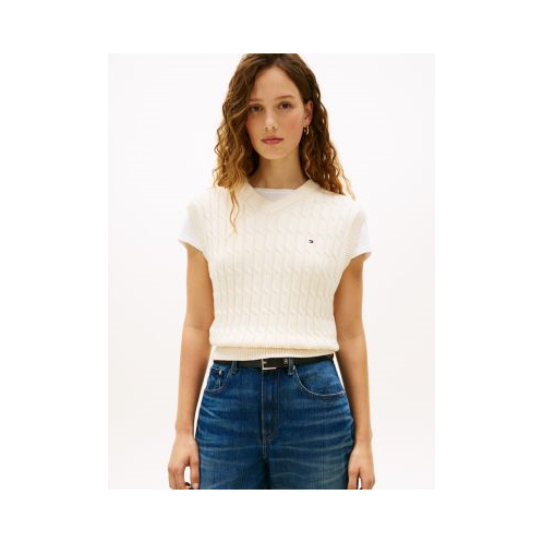 Tommy Hilfiger women's sweater. Made from a fine-gauge cable knit, this lightweight cotton V-neck sweater vest is ideal for transitional-weather days.