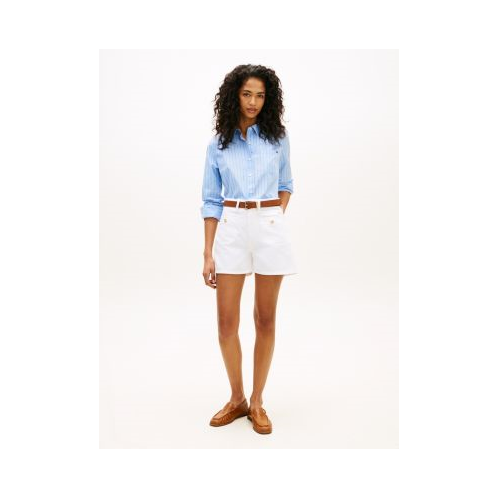 Tommy Hilfiger women's short. These flattering high-waisted shorts pair with nearly anything, from a cable knit sweater to a cropped tank top. Made from rigid denim that shapes to your form over time, they're finished with gold-tone buttons and patch pockets for a retro feel.