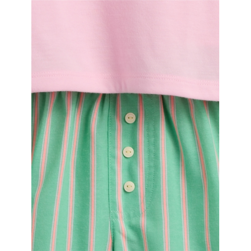 - Soft jersey tee with smooth poplin shorts.