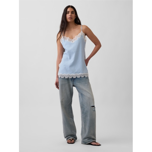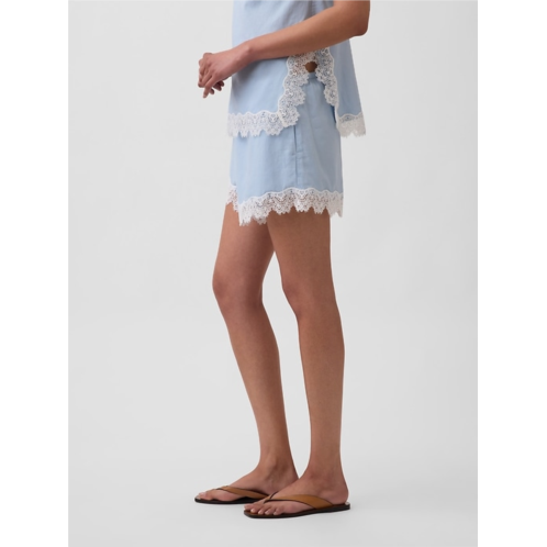 [US] Gap 4 Mid Rise Linen-Blend Lace-Trim Shorts