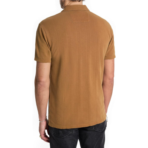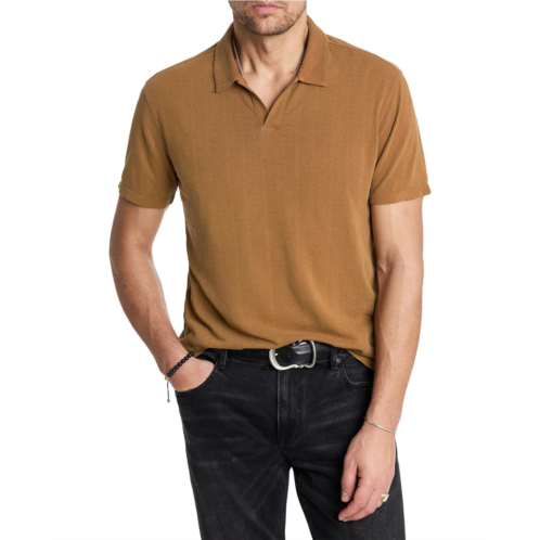 - Designed with vertical texture patterns and overdyed process, the John Varvatos Zion Polo K6171F24 offers a breathable feel in a regular fit silhouette. It features a collared V-neckline, short sleeves, open front placket, and straight hem with side symmetrical vents.