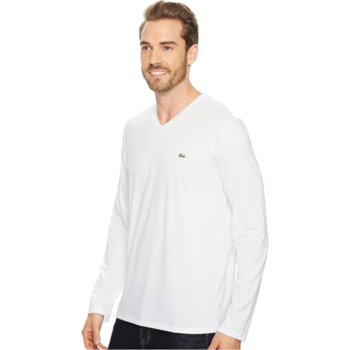 [US] Mens Lacoste Long Sleeve Pima Jersey V-Neck T-Shirt