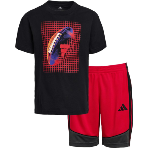 - Get your little one ready for action choosing this Color-block Shorts Set from adidas. The set includes a short sleeve graphic tee featuring a posterized football design and a comfortable pair of shorts. The tee is crafted from soft cotton jersey, ensuring a cozy fit, while the shorts boast an elasticized waistband and bold color-blocked design. Perfect for playtime or sports practice, this set combines style and functionality effortlessly.