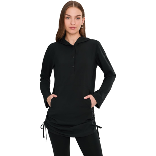 - The Columbia PFG Castback Coverup is a lightweight layer featuring Omni-Shade broad spectrum UPF 50 sun protection to shield against harmful rays and Omni-Wick technology to keep you dry by pulling moisture away from the skin. A front kangaroo pocket adds convenience, while the adjustable tie-up hemline lets you customize the fit.
