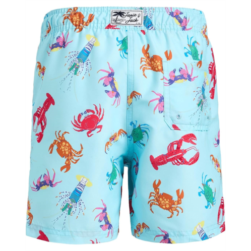 - Let your little ones slay a stylish look and be comfortable all day long by wearing the Janie and Jack Printed Swim Trunk. The pull-on style shorts have a classic fit with UV protection for comfortable and prolonged wear. The shorts have a comfy elasticated waistband and brand logo patch at the center back with a back pocket. The intricate print elevates the look effortlessly.