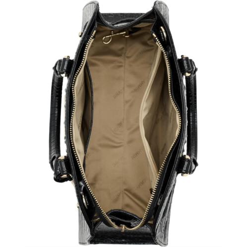- Angelina from Brahmin is a sleek, tailored satchel that brings sophisticated style to everyday. The zippered top closure keeps all of your items secure, while the double-up adjustable crossbody strap allows for maximum versatility. Interior pockets provide effortless organization; everything has its place.