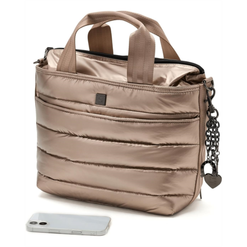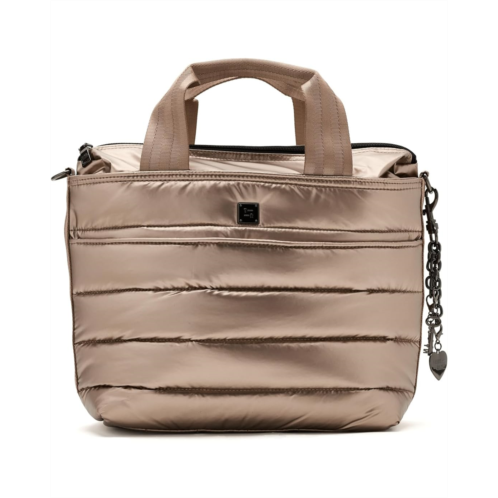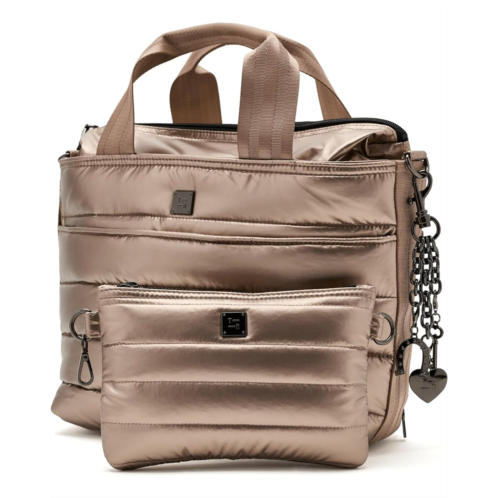- In the mood for a Getaway? You've got the perfect bag for every day exciting adventures...the THINK ROYLN Getaway triple threat combo is a tote + a mini pouch + charm...All meant to mix and match, wear your way, and achieve multiple levels of style and excitement. The details are what make this bag exceptional...The tote is shrunken yet spacious with modern wide quilting for a new level of cozy...The side web detailing and footed bottom balance in structure to this mighty tote. The mini pouch can be used as an inner bag, an accessory to clip on your bag or used as a matching crossbody... And, the brand's favorite detail? The detachable charm set of course!