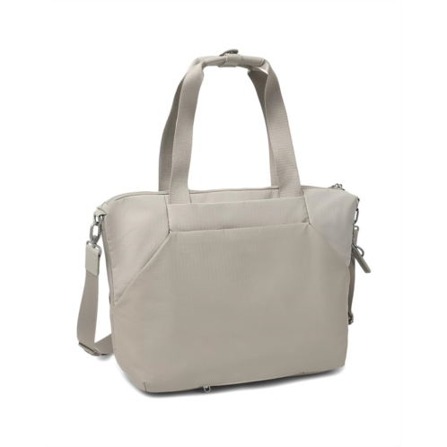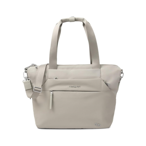 - Hedgren KICHO Laptop Tote has everything you need to keep your work organized. The expandable and spacious main compartment with lockable kissing sliders has a designated space for your laptop, cables, and a pocket with RFID blocking material. When you're traveling, the integrated smart sleeve can be used to attach the tote to a luggage handle. The soft-to-the-touch fabric exudes a minimal, refined style that's perfect for the office. Built from durable polyester, this business-oriented bag offers a padded laptop compartment, dedicated cable, and accessory pockets.