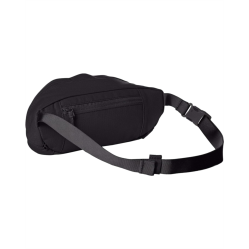 - Adjustable, webbed waist strap with buckle closure and sliding strap keeper.