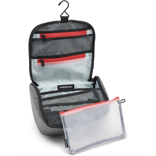 - Say goodbye to messy counters and hello to the Sherpani Co-Pilot Travel Toiletry Case, your go-to for stress-free travel organization. Crafted from durable recycled polyester, this compact case is loaded with smart storage: a front zipper pocket, hanging hook for vertical access, and a flap with both mesh and clear zipper compartments. The roomy main compartment features four slip pockets and three mesh slip pockets to keep your essentials sorted. A removable wet pouch handles spills with ease, while a key leash adds extra convenience. Whether you're hopping hotel rooms or living out of a suitcase, the Co-Pilot's haul handle and hang-anywhere design make transitions seamless.