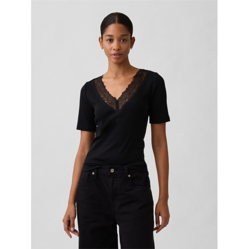 [US] Gap Ribbed Lace V-Neck Top
