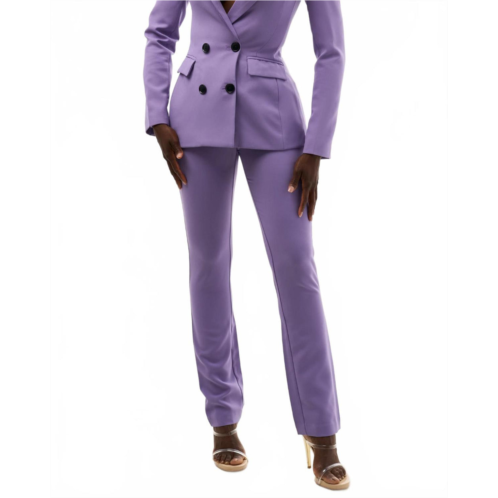 Introducing the Kris Straight Leg Trousers by Ciao by CC, crafted for a streamlined and tailored look in a vibrant purple hue. These trousers feature a comfort fit with straight legs and pressed pleats, making them an ideal choice for a feminine power suit. The zip closure ensures a secure and polished finish, perfect for workwear or engagement occasions. Embrace elegance and confidence with these solid-patterned trousers designed for summer styling.