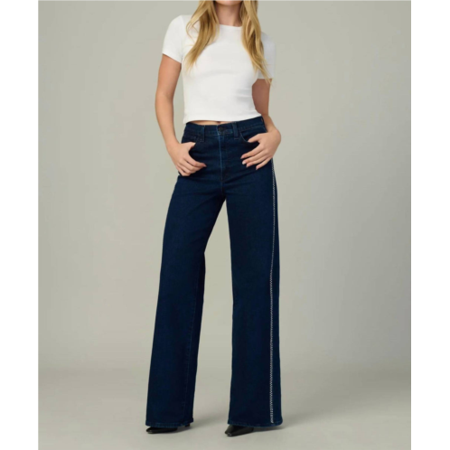 A flattering silhouette that's suprisingly versatile.Elevate your wardrobe with Joe's Jeans Mia Wide Leg With Crystals in 'Bright Lights'. These women's high-rise jeans are expertly crafted from quality cotton for a comfortable fit, featuring an 11.5' rise and 34' full-length inseam. The solid pattern and clear crystal embellishments along the side seams bring a touch of glamour, complemented by 5-pocket styling and a secure zip closure. Designed with a wide leg and relaxed fit, these jeans offer effortless style for any occasion. Please note, they are not machine washable.