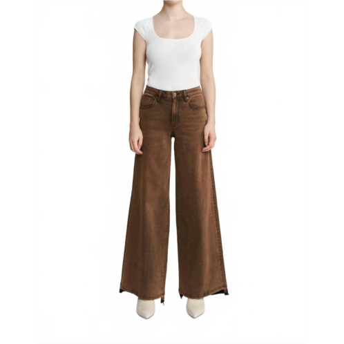 [US] Mica denim high rise wide leg vintage wash denim pants in antique bronze