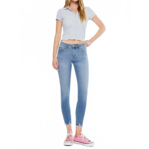 The perfect skinny jeans to wear with your favorite boots this season!Elevate your casual wardrobe with the Mid Rise Ankle Skinny Jeans from KanCan, showcasing a versatile relaxed fit and classic skinny silhouette. Crafted from a stretch denim blend of 74% cotton, 15% polyester, 10% rayon, and 1% spandex, these jeans feature a medium wash with a stylish distressed look enhanced by fashionable frayed hems. Designed with convenience in mind, they include functional pockets and a secure zip closure with a one-button fly. With a front rise of 9 inches and an inseam of 27 inches, these jeans are perfect for travel or summer streetwear occasions. Care instructions are simple with a machine wash and tumble dry routine.