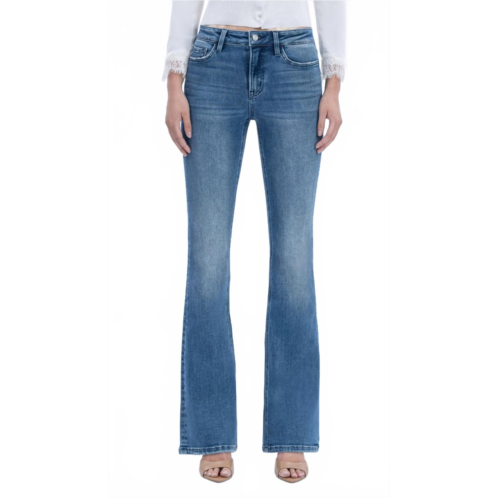A boot-cut jean that not only looks good on, you'll be comfortable in them all day.Enhance your wardrobe with the Lovervet Bootcut Jeans in solid blue, where style meets function in a medium wash denim. These high-rise jeans, constructed from a blend of 93.5% cotton, 4.5% polyester, and 2% spandex, ensure all-day comfort with a flexible fit. Featuring a button closure, these jeans have a regular fit that culminates in a and wears a size 26, with a leg opening of 18.5 inches.