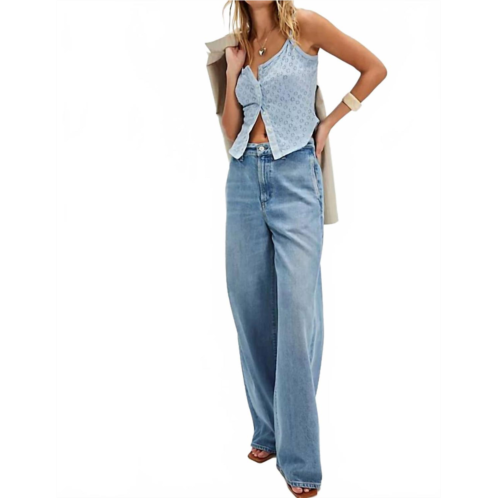 Pair these wide leg jeans with mules, slides or your favorite strappy sandals.Embrace timeless style with the Ayla Polish Trouser Jeans by Citizens of Humanity, crafted in a chic Chalice color. These jeans feature a mid-rise and relaxed wide-leg silhouette, made from a blend of 30% PCR cotton and 70% Lyocell, offering both comfort and sustainability. Designed with a zip fly and button closure, they sport a four-pocket design in a soft, solid-based, light-wash denim, echoing '90s fashion. Proudly imported, they require easy care with machine washing and tumble drying, making them a versatile choice for a spring dinner party or a casual Easter outing.