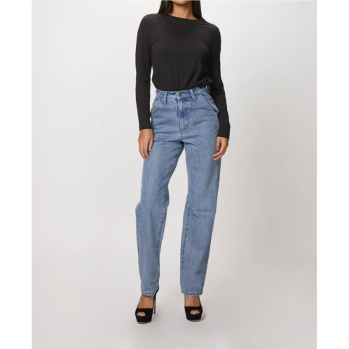 These must-have jeans are fit to perfection.The Mom Jean is made from rigid cotton denim in a blue wash and has a relaxed silhouette.They are designed to sit high on the waist and have a flattering straight leg.They are slightly more refined that your favorite jeans due to the tailored fit and slit pockets.Pair with a rollneck or poplin shirt for a chic look.
