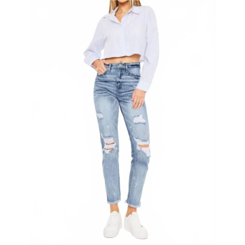 This classic straight leg jean has a perfect fit and goes with just about everything.The Women's High Rise Slim Straight Jeans by KanCan bring a chic textured look with a streetwear edge. These grey jeans feature a straight leg style and light wash, perfect for a spring wardrobe update. Designed for women, the jeans come with a convenient zip closure and practical pockets. Elevate your vacation attire with these stylish and versatile denim essentials.