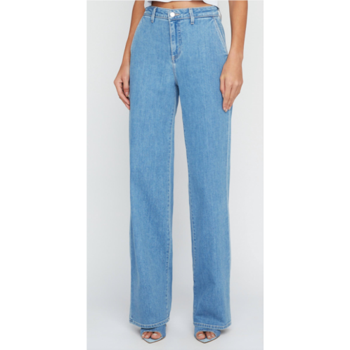 Just as cute as they are comfortable.Highrise wide leg trouser in belize color. A wide-leg jean with the look of a trouser. In a soft stretch denim, the Weston drapes elegantly from a gape-proof contoured waistband into a flattering wide-leg that balances the silhouette. Unobtrustive side pockets and slim back welts bring understated polish. Add a cami and sandals for summer chic.94% Cotton 5% Polyester 1% Spandex. Rise - 10.5'. Inseam - 33'. Leg Opening - 20'. Model Details - Height 5’9.5' | Bust 32' | Waist 24' | Hips 35' | Wearing Size 25. Made in Los Angeles