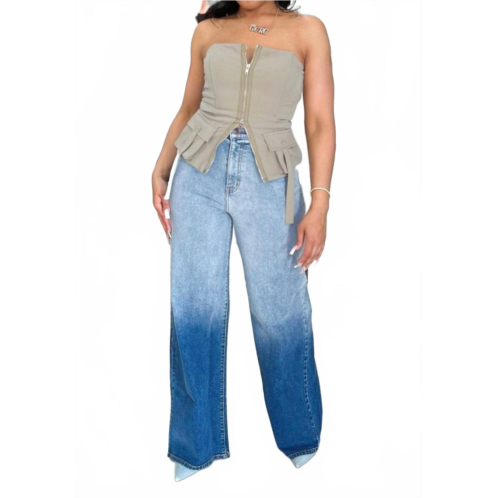 [US] Vibrant Miu ombre wide leg jeans in blue