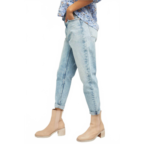 Fit to perfection, we love these high-waist jeans and you will too.Discover the Zuri Mom Jeans by Free People, perfect for those seeking a relaxed, high-rise fit with a lived-in feel. These jeans in Lived in Blue boast a tapered leg style and feature a button-front closure for a modern twist on a classic design. They are crafted with a light wash and come with functional pockets for added convenience. Care is simple with machine wash and tumble dry instructions, making them an effortless addition to any minimalist wardrobe.