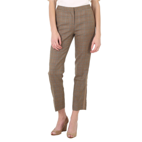 Burberry Ladies Bottoms. SKU - 8024814. Color - Beige. Burberry Beige Houndstooth Check Tailored Trousers. Houndstooth patterned suit pants woven in wool with concealed front closure, side pockets, straight fit and houndstooth pattern. 100% Wool. Made in Italy.
