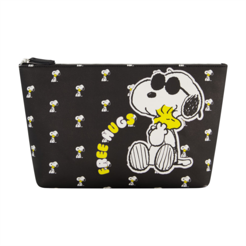 Spread some love wherever you go with this adorable Snoopy 'Free Hugs' Travel Case! Featuring Snoopy hugging Woodstock against a sleek black backdrop, this officially licensed case is both functional and fun. The all-over print of mini Snoopy icons adds a playful touch, while the bold 'Free Hugs' text brings smiles all around. Perfect for carrying your essentials on the go, this spacious zippered pouch is ideal for cosmetics, toiletries, or any travel must-haves. This travel case brings a nostalgic charm while keeping your essentials safe. Take Snoopy with you on your next adventure!-This is an officially licensed cosmetic Travel bag-Zip Closure for secure storage-Perfect for - Makeup, accessories, or travel essentials-Silver hardware-Zip closure-Materials - 100% Polyvinyl chloride-Dimensions - 7H X 12W X 3.5D-Weight - 0.5lbs.-Imported