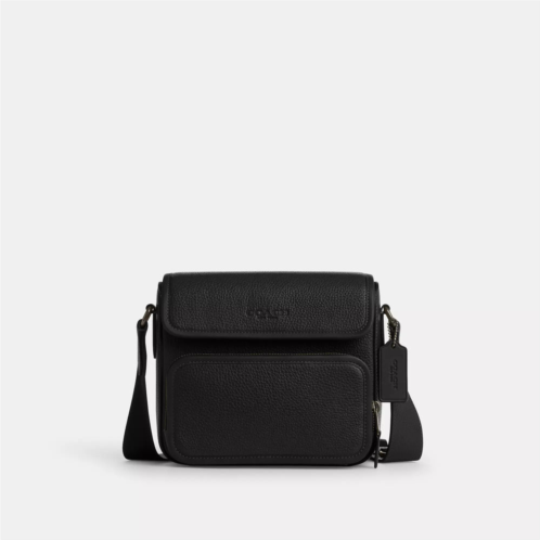 Refined pebble leather and smooth calf leather Inside multifunction pocket Zip and magnetic snap closures fabric lining Outside zip and open pockets Adjustable strap with 29 1/2 drop for shoulder or crossbody wear 7 3/4 (L) x 6 3/4 (H) x 3 1/2 (W) Style No. CY800 | Coach Outlet Sullivan Flap Crossbody Bag - Grey