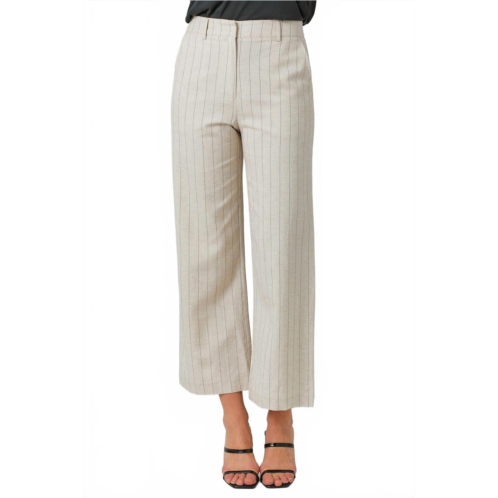 Enhance your wardrobe with this trendy cropped number, designed to blend style and practicality. The comfortable fit allows for easy all-day wear. The perfect length to pair with your favorite mules.Elevate your workwear wardrobe with the Pin Stripe Tailored Trousers by Mystree, crafted for sophisticated style. These full-length, wide-leg pants boast a relaxed fit and a flattering mid-rise waist, ideal for a sleek silhouette. With a classic striped pattern, they feature a convenient button and zipper closure and practical side pockets. Care - Dry clean only. Perfect for a dinner party or any elegant summer occasion.