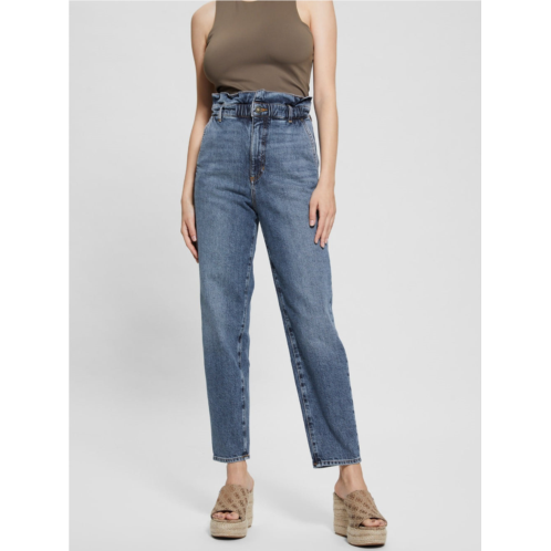 Guess Nellie Ankle Jeans Women's Blue Denim Paperbag Waist Pockets FTS1153