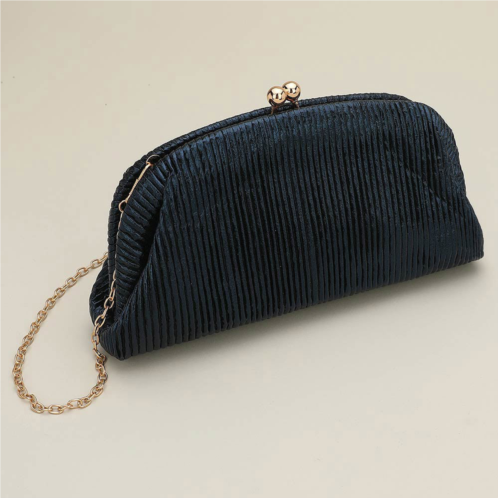 Size - 9' X 4.5' X 2.5'Strap Size - 46' L / DetachableOne Inside Slip PocketClasp ClosureDiscover a refined pleated evening clutch designed for effortless elegance at formal events. Featuring a secure kiss-lock closure, spacious interior pocket, and detachable chain strap, this timeless accessory keeps essentials organized while elevating any special-occasion look.