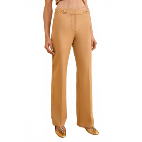 The trend report says boot-cut is in and that's exactly why we love this style. They are fit to perfection, flattering on any body type, and comfortable. They will be your go-to all season long.Introducing the Ulla Johnson Quartier Mid-rise Pants in a rich brown hue, tailored from a wool-blend gabardine for a polished finish. These pants feature a mid-rise, relaxed fit with slightly flared legs, complemented by signature twisted horse-bit hardware at the waistband. Composition is 53% polyester, 43% virgin wool, and 4% elastane with a concealed front hook, button, and zipper closure. For care, hand wash or dry clean is recommended. Ideal for transitioning from work to weekend, these pants offer a refined, timeless silhouette.