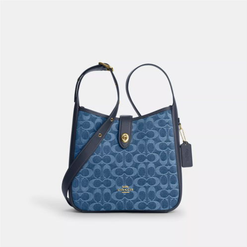 Signature denim and smooth leather Inside zip pocket Turnlock closure fabric lining Adjustable strap with 20 1/2 drop for shoulder or crossbody wear 9 3/4 (L) x 9 1/2 (H) x 3 1/4 (W) Exclusive of trim this denim style is crafted of cotton sourced from farms that use regenerative agricultural practicesthose that help to maintain and rejuvenate land increase biological diversity and soil health and could lead to increased carbon absorption Style No. CDB98 | Coach Outlet Hadley Convertible Crossbody Bag In Signature Denim - Blue, Size - Medium