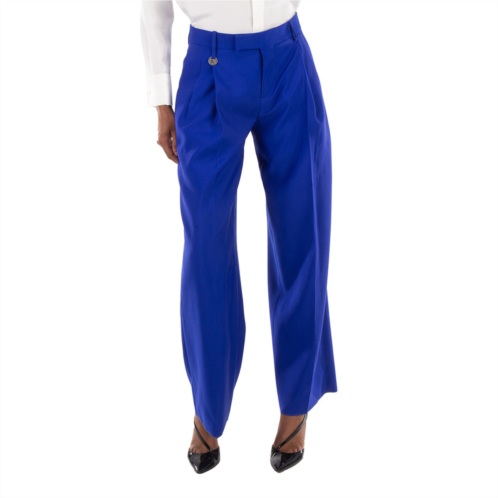 Burberry Ladies Bottoms. Fashion category - Pants & Leggings. SKU - 8089192. Color - Knight. Burberry Wide- Leg Pleated Pants. This pants is made from wool and features a silver-tone logo plaque, a signature equestrian knight motif, pleat detailing, belt loops, a wide leg, a concealed front fastening, two side slit pockets and two rear jetted pockets. Outer - Wool 100% Lining - Cupro 100%. Made in Italy.