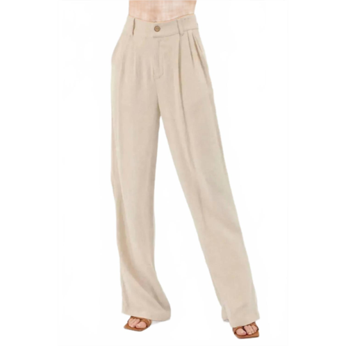 Upgrade your wardrobe with the Margo High Waist Trouser by Kylie Paige, a perfect blend of elegance and versatility in a sophisticated oak hue. Crafted from an appealing mix of 75% rayon and 25% linen, these trousers feature a relaxed fit and straight leg style, ideal for spring and workwear. The high-rise design is complemented by a button and zipper front closure, with five belt loops, pleats, and side seam pockets for added utility and style. Embrace timeless sophistication with this must-have piece in your closet.