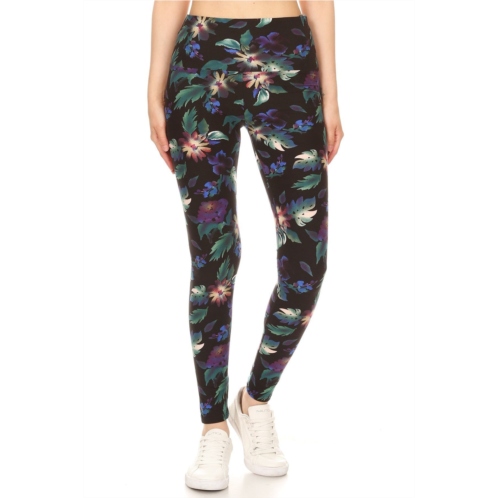 [US] TRUEDAMES long yoga style banded lined floral printed knit legging with high waist