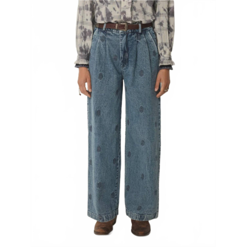 Just as cute as they are comfortable.Elevate your casual wardrobe with the Women's Paco Wide Leg Pant by Maison Hotel in Hamptons Blue. Crafted from 100% cotton, these pants boast a comfortable wide-leg silhouette and a flattering mid-rise fit, featuring an artisanal dark blue embroidery for a distinctive touch. The pants offer a button closure and thoughtful pocket design, with a medium wash finish that lends a relaxed, vintage vibe. Care is a breeze with machine wash and tumble dry instructions, making these denim pants both stylish and practical.