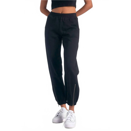 No gym necessary for these cool-girl joggers. Experience ultimate comfort and style with the ELAN Ankle Zipper Jogger, tailor-made for fashionable women. These black joggers, crafted from an 85% cotton and 15% polyester blend, feature a solid pattern and a high-rise, relaxed fit with a tapered leg. The pull-on closure ensures ease of wear, while the edgy zipper details and practical pockets enhance functionality. Care for them effortlessly with machine wash and tumble dry instructions.