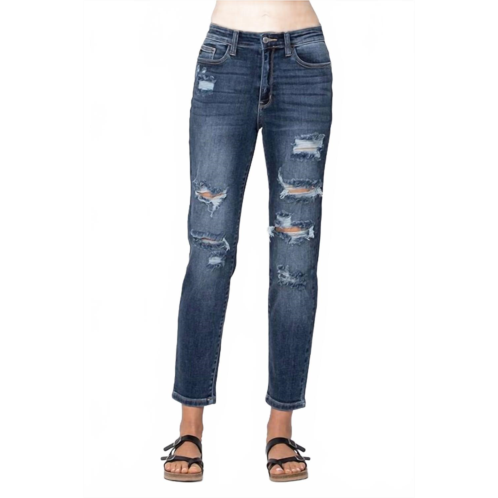 [US] Judy Blue hi-waist boyfriend destroyed hem jeans in dark wash