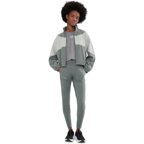 - Finish-off your winter look wearing the stylish Under Armour Rival Woven Jacket. Featuring stand collar neckline, long sleeves, zippered front closure, two side hand pockets, and elasticized cuffs and hem.